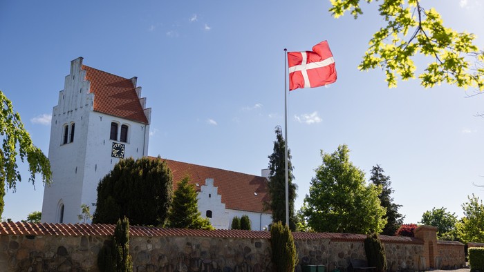 Efter gudstjenesten hejser vi flaget og synger ”En lærke letted”.